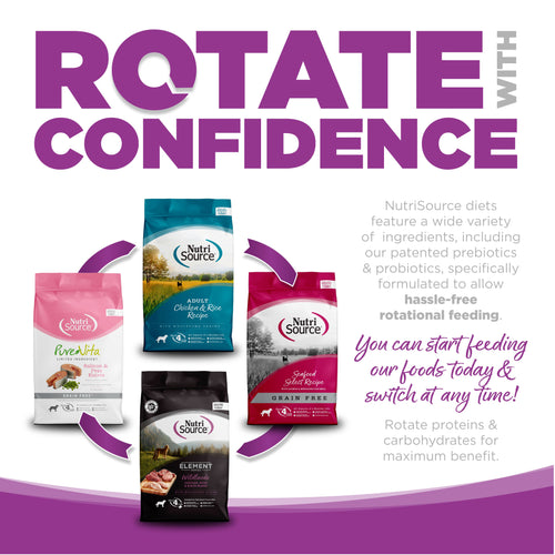 • NutriSource grain inclusive formulas deliver compact nutrition and include pre and pro-biotics to help support a healthy gut.